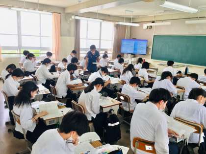 20日(月)、1年生1組の5時間目の授業の様子です。授業者は、担任の先生でした。