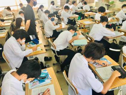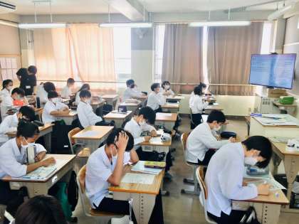 1年生5組の授業(理科)の様子 公開日 2022/06/23 更新日 2022/06/23 学校 23日(木)、1年生5組の1時間目は、理科の授業でした。生徒は、中間テスト以降の学習した内容を確認するワークシートに取り組んでいました。