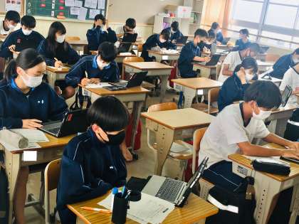 2年生7組の授業(技術)の様子 公開日 2022/07/05 更新日 2022/07/05 学校 5日(火)、2年生7組の2時間目の授業は、技術の授業でした。生徒は、生物育成に関わる今後の日本の課題について考えていました。