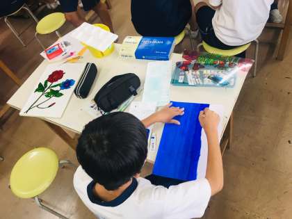 2年生5組の授業(美術)の様子 公開日 2022/07/07 更新日 2022/07/06 学校 6日(水)、2年生5組の1時間目は、美術の授業でした。ステンドグラス風の作品制作をしていました。多くの生徒が、作業を完了しているようでした。