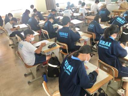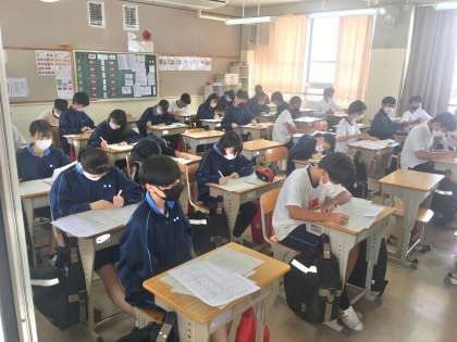 2年生7組の授業(数学)の様子 公開日 2022/07/07 更新日 2022/07/06 学校 6日(水)、2年生7組の3時間目は、数学の授業でした。先週行われた期末テストの答案用紙が返却されていました。