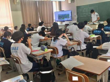 1年生6組の授業(社会)の様子 公開日 2022/07/07 更新日 2022/07/07 学校 7日(木)、1年生6組の2時間目は、社会の授業でした。歴史的分野の学習から地理的分野の学習(世界の諸地域)にうつっていました。