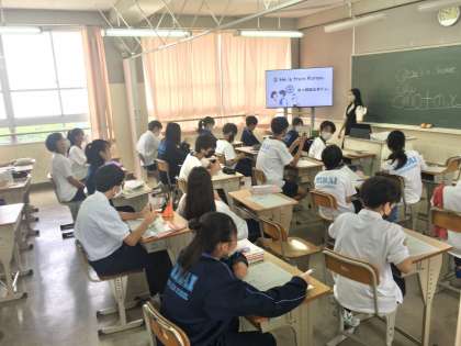 1年生:英語の授業〜人について尋ねる表現〜 公開日 2022/07/14 更新日 2022/07/14 学校 1年生は、英語の授業で、who を使って、人について尋ねる表現を学習しています。 ※写真は、3組の授業の様子です。