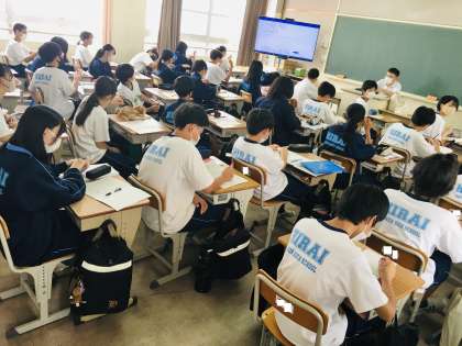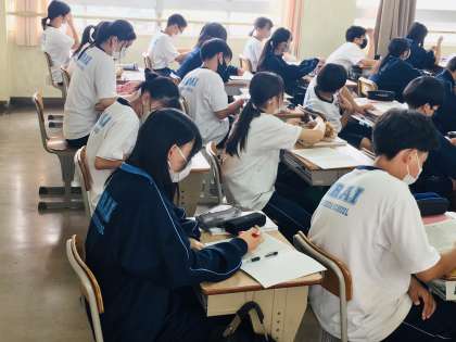 1年生の数学の授業では、4月より、毎時間、既習の基礎的な計算問題の復習に取り組んできました。毎時間取り組むことで、前回解けなかった同じ問題が解けるようになったり、解いて正解することで学習への意欲が高まったりしているようです。