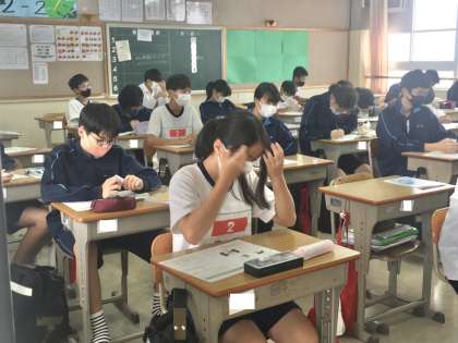 2年生2組の授業(技術)の様子 公開日 2022/09/07 更新日 2022/09/07 学校 7日(水)、2年生2組の1時間目は、技術の授業でした。社会と暮らしを支えるエネルギーについて学習していました。
