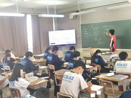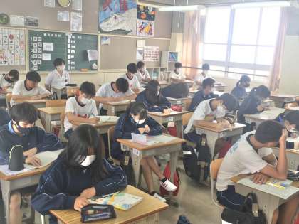 7日(水)、2年生1組の1時間目は、担任の先生による数学の授業でした。