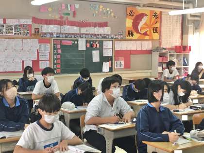 8日(木)、3年生5組の1時間目は、社会の授業でした。2学期に入り、公民分野の学習が本格的に始まっています。