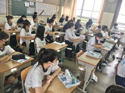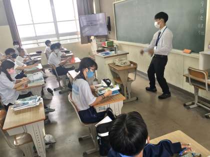 9日(金)、1年生3組の1時間目は、理科の授業でした。授業は、今週末より、教育実習生の先生が担当しています。