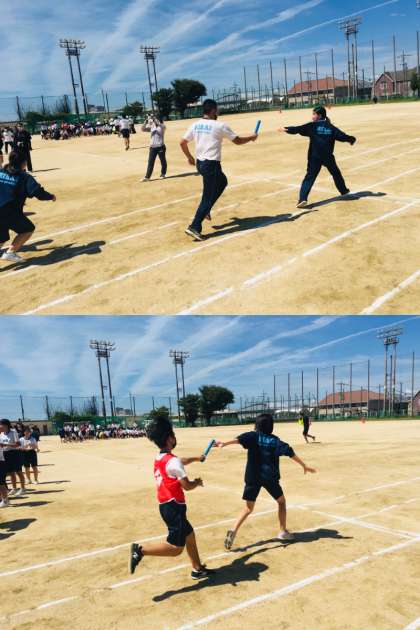 3年生:体育大会〜学年種目 one for all relay〜 公開日 2022/09/13 更新日 2022/09/13 学校 12日(月)4時間目に、3年生は、学年種目 one for all relay(学級対抗全員リレー)の練習を行いました。少しずつですが、テイク・オーバーゾーン内でバトンが次走者にスムーズにわたるようになっています。