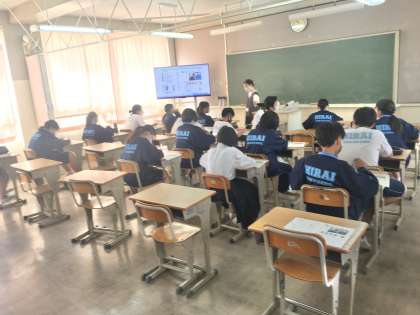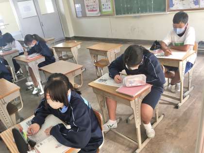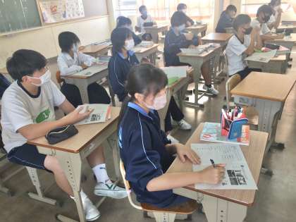 1年生:英語の授業〜Unit5〜 公開日 2022/09/14 更新日 2022/09/14 学校 14日(水)、1年生は、英語の授業で、Unit5の学習に取り組んでいます。授業では、命令文を使った アナウンス を聞いたり、命令文を書いたりする活動に取り組んでいます。 ※写真は、1組の授業の様子です。