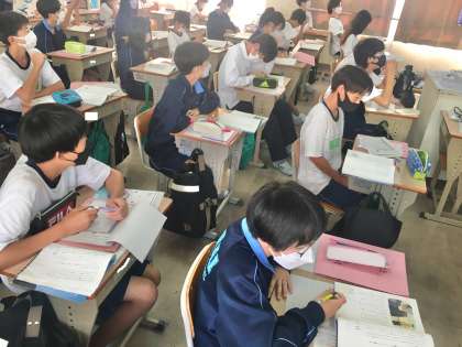14日(水)、1年生6組の1時間目は、国語の授業でした。安東みきえさんの教科書用作品「星の花が降るころに」の学習が始まっていました。