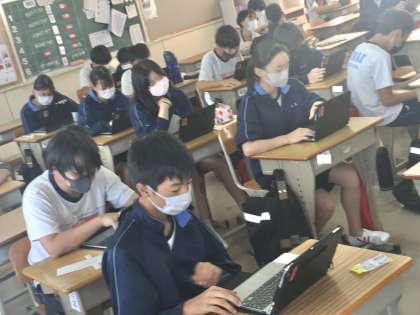 15日(木)、2年生7組の1時間目は、社会の授業でした。