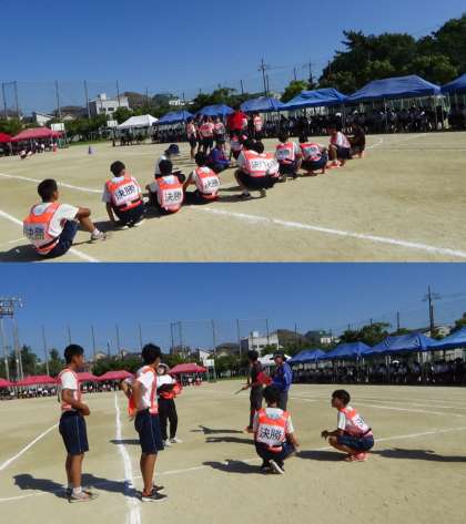 体育大会では、競技用具の準備、記録、アナウンス放送、ピストルによるスタート合図、競技の審判など様々な役割を生徒が担ってくれています。スムーズな競技運営には欠かせない、どれも大切な仕事です。