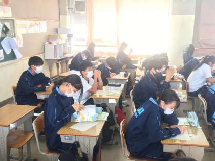 2年生7組の授業(国語)の様子 公開日 2022/09/20 更新日 2022/09/20 学校 20日(火)、2年生7組の1時間目は、国語の授業でした。教材「モアイは語る」を通して、説明文の構成について学んだり、筆者の主張を考えたりしていました。