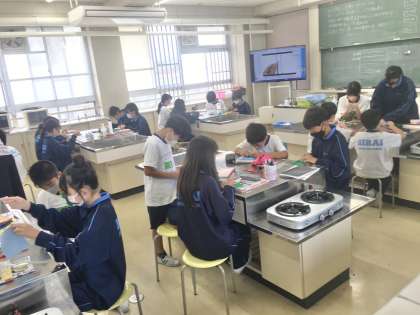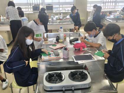 1年生2組の授業(家庭科)の様子 公開日 2022/09/20 更新日 2022/09/20 学校 20日(火)、1年生2組の1時間目は、家庭科の授業でした。生徒は、基礎縫いの技術実習の一環として、玉結びや玉どめの練習をしていました。
