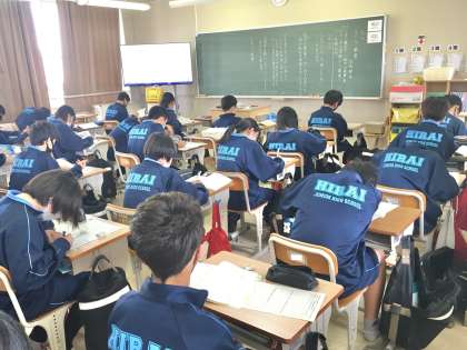 2年生4組の授業(国語)の様子 公開日 2022/09/25 更新日 2022/09/21 学校 21日(水)、2年生4組の4時間目は、国語の授業でした。授業では、教材「字のない葉書」の学習が始まっていました。 この作品は、直木賞作家の向田邦子さんが太平洋戦争の頃、自身の13〜16歳の時の体験エピソードをもとに書かれています。