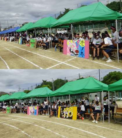 1年生観覧席!〜第38回体育大会〜 公開日 2022/09/23 更新日 2022/09/22 学校 1年生にとって初めての体育大会です。競技のルールや招集方法に戸惑いながらも、体育大会を満喫しているようでした。