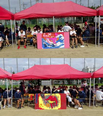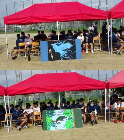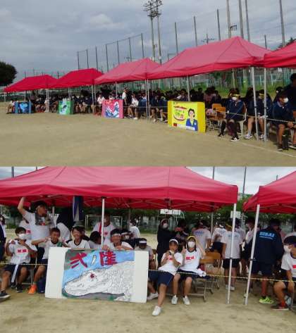 2年生観覧席の様子です。発声での応援をひかえ、大きな拍手の音で声援を送っていました。