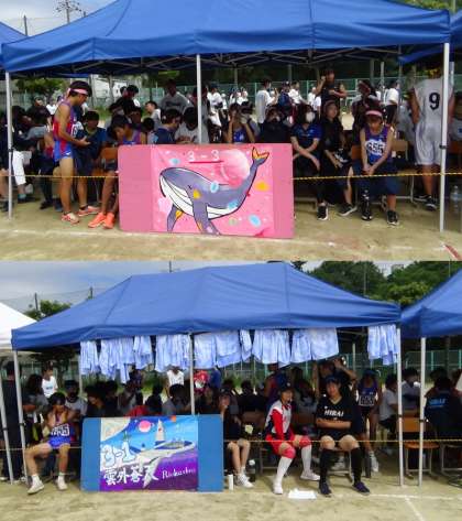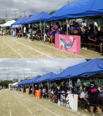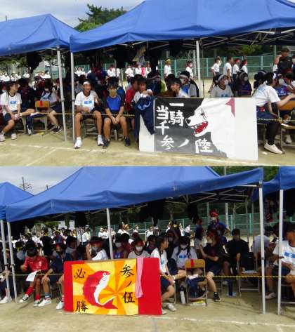 3年生の観覧席の様子です。3年生にとっては、もう慣れ親しんだ平井スタイルでの応援風景です。