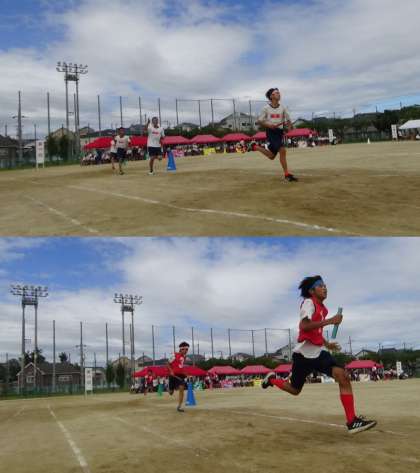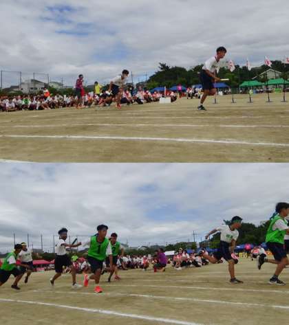 学級対抗リレー(1・2年男子の部)〜第38回体育大会〜 公開日 2022/09/24 更新日 2022/09/23 学校 学級対抗リレー(男子の部)では、1走者が200mを走りました。 途中150mあたりを過ぎてからの残り50mでスタミナ勝負が展開されました。