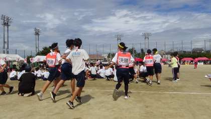 体育大会では、競技で必要な用具の速やかな準備、タイムリーに大会を盛り上げるアナウンス放送、競技の厳正な審判など様々な役割分担を生徒が担ってくれました。そのおかげで、スムーズな競技運営をすることができました。ありがとうございました。