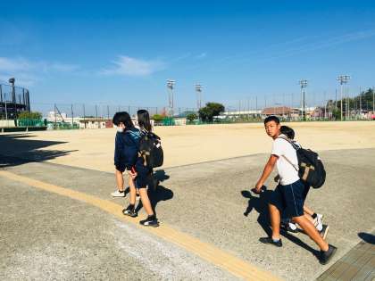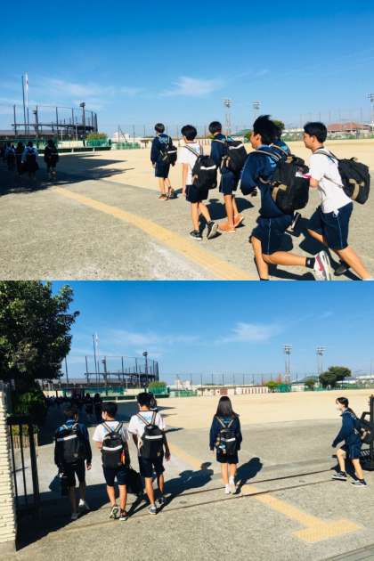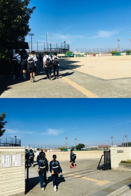 26日(月)の登校の様子です。すかっとした青空が広がっていました。