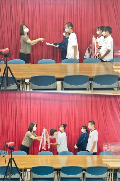 集会(体育大会表彰)を行いました! 公開日 2022/09/26 更新日 2022/09/26 学校 本日26日(月)、朝の会後に、TV放送形式による集会を行いました。集会のメインは、競技の部や学級旗の部などの体育大会関連の表彰セレモニーでした。