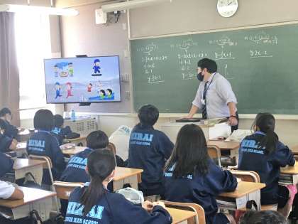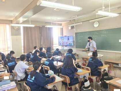 26日(月)、2年生7組の5時間目は、英語の授業でした。授業は、教育実習の先生が担当していました。