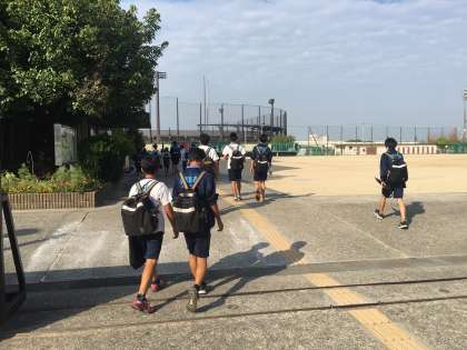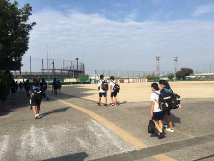 27日(火)、登校時の様子です。曇り模様の朝でした。