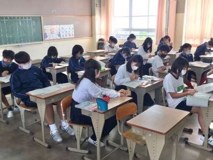 3日(月)、1年生1組の3時間目は、英語の授業でした。