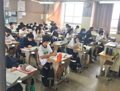 5日(水)、1年生3組の2時間目は、国語の授業でした。生徒は、説明文中から仮説を実証するために行われた実験の内容とその結果を本文から読み取っていました。