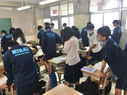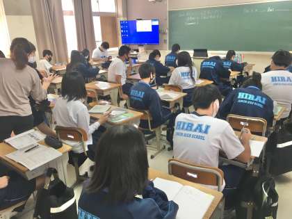 3年生5組の授業(英語)の様子 公開日 2022/10/05 更新日 2022/10/05 学校 5日(水)、3年生5組の1時間目は、英語の授業でした。普段自身が取り組んでいる環境にやさしい行動について相手に伝えたり、尋ねたりする活動が行われていました。