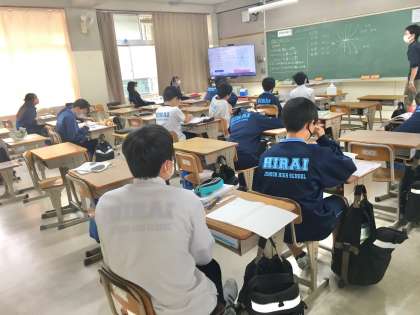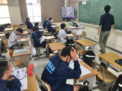 3年生6組の授業(数学)の様子 公開日 2022/10/05 更新日 2022/10/05 学校 5日(水)、3年生6組の2時間目は、数学の授業でした。生徒は、二次関数のグラフの特徴について考えていました。
