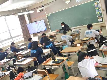 6日(木)、1年生4組の1時間目は、英語の授業でした。