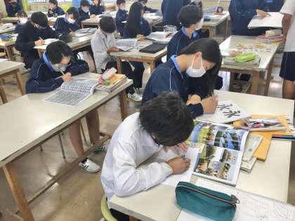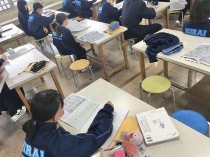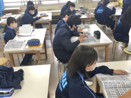 1年生6組の授業(美術)の様子 公開日 2022/10/11 更新日 2022/10/07 学校 7日(金)、1年生6組の1時間目は、美術の授業でした。生徒は、レタリングを生かした創作漢字の制作に取り組んでいました。