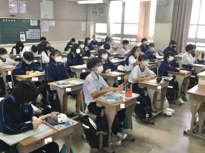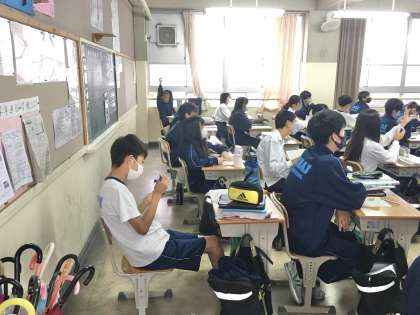 7日(金)、1年生3組の1時間目は、理科の授業でした。質量を体積で除じて密度を求める課題に取り組んでいました。