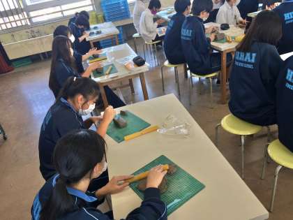 本格的な土粘土を使っての陶芸制作実習が始まっていました。