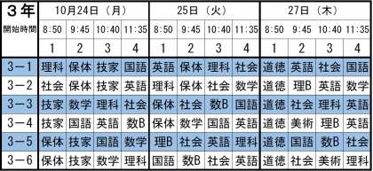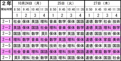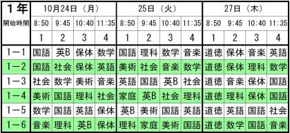 ※オープンスクール期間中の午前中のみの時間割を掲載しています。諸事情により、授業予定が急遽変わる場合があります。その際は、ご容赦のほど、お願いします。