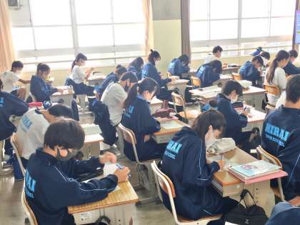 1年生3組の授業(国語)の様子 公開日 2022/10/12 更新日 2022/10/12 学校 12日(水)、1年生3組の2時間目は、国語の授業でした。いよいよ明日に迫った中間テストに向けて、生徒は、より意欲的に学習に取り組めていました。