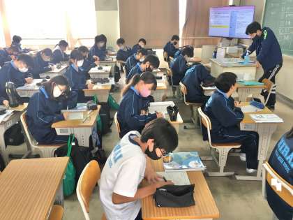 12日(水)、1年生1組の2時間目は、理科の授業でした。