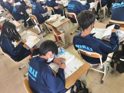 2年生4組の授業(国語)の様子 公開日 2022/10/12 更新日 2022/10/12 学校 12日(水)、2年生4組の3時間目は、国語の授業でした。2年生国語科では、漢字テストの追試験が予定されているようです。対象の生徒は、確実に受験しておきましょう。