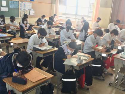 2年生では、13日(木)より中間テストが始まりました。1日目の受験教科は、国語、社会、数学でした。