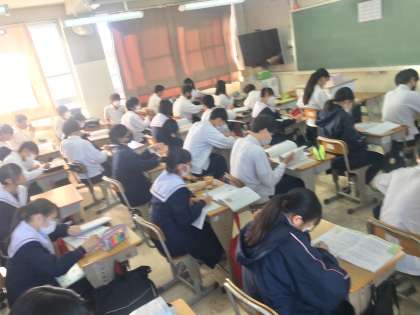 ※写真は、(上)から順に、テスト前の1〜3組の自習の様子です。