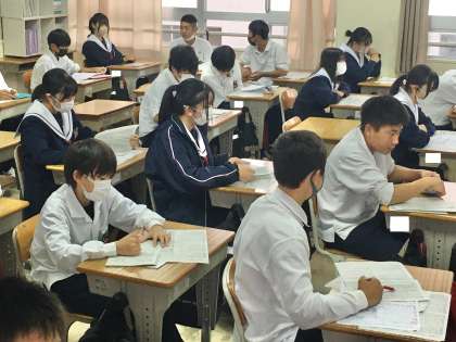 本校では、生徒がテスト後の見直し学習や復習にスムーズに取り組めるように、テスト終了後、答案用紙だけでなく、問題用紙も一時的に回収をしています。