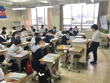 17日(月)、2年生5組の1時間目は、担任の先生による国語の授業でした。先日行われた中間テストの問題用紙と答案用紙が返却されていました。