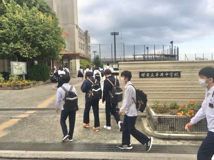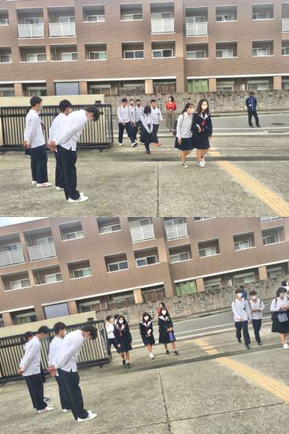 18日(火)登校の様子 〜率先あいさつ〜 公開日 2022/10/18 更新日 2022/10/18 学校 18日(火)登校の様子です。後期生徒会の生徒が、登校してくる生徒を元気なあいさつで迎えてくれています。