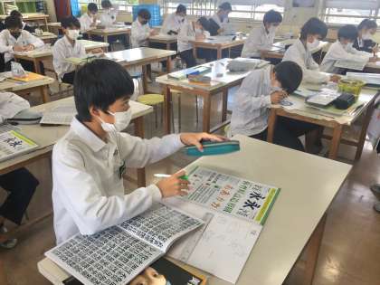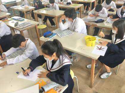 1年生:美術の授業〜期限までに仕上げよう〜 公開日 2022/10/18 更新日 2022/10/18 学校 1年生は、美術の授業で、創作文字のデザイン学習に取り組んでいます。 作業が予定よりも早く進んでいる生徒、まずまず予定通りに進んでいる生徒など進捗状況はさまざまなようです。期日までには確実に完成できるように計画的に作業を進めていきましょう。 ※写真は、5組の授業の様子です。