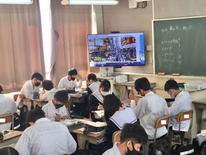1年生は、社会の授業で、北アメリカ州について学習しています。今後、授業では、自然環境、多様な民族構成、大規模な農業など特徴的な点について理解を深めていく予定です。