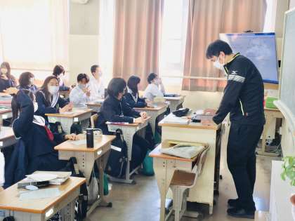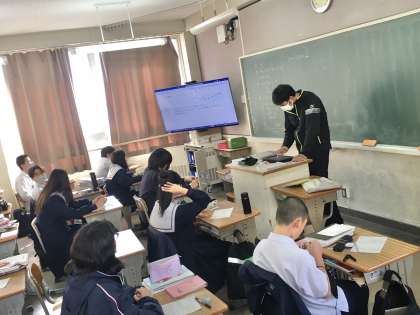 1年生は、数学の授業で、平行移動、回転移動、対称移動などのさまざまな図形の移動方法について学習しています。移動前・後の対応する辺や角にどのような関係があるのかについて考えています。