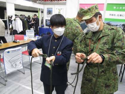 2年生:職場体験セミナー 〜自衛隊〜 公開日 2022/12/14 更新日 2022/12/14 学校 職場体験セミナー:自衛隊ブースの様子です。自衛隊大阪地方協力本部の人気マスコット「まもるくん」が、平井中生のがんばりを見に来てくれました。